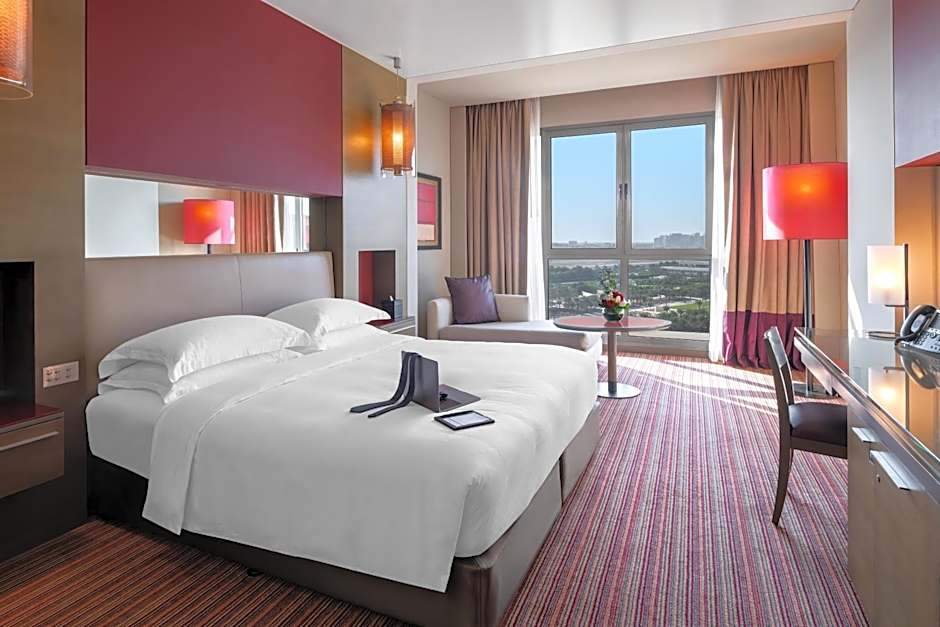 At Park Rotana, fun and relaxation go hand in hand! Whether you're lounging by the outdoor swimming pool or enjoying quality time with your little ones at the kids' pool, there's something for every traveler. Dive into wellness with their premium spa packages, sweat it out at the fully equipped fitness center, or challenge a friend to a friendly match on the tennis court, all while soaking in gorgeous garden views. And don’t forget about the delicious culinary offerings from the on-site restaurant and bar – both guaranteed to tickle your taste buds!